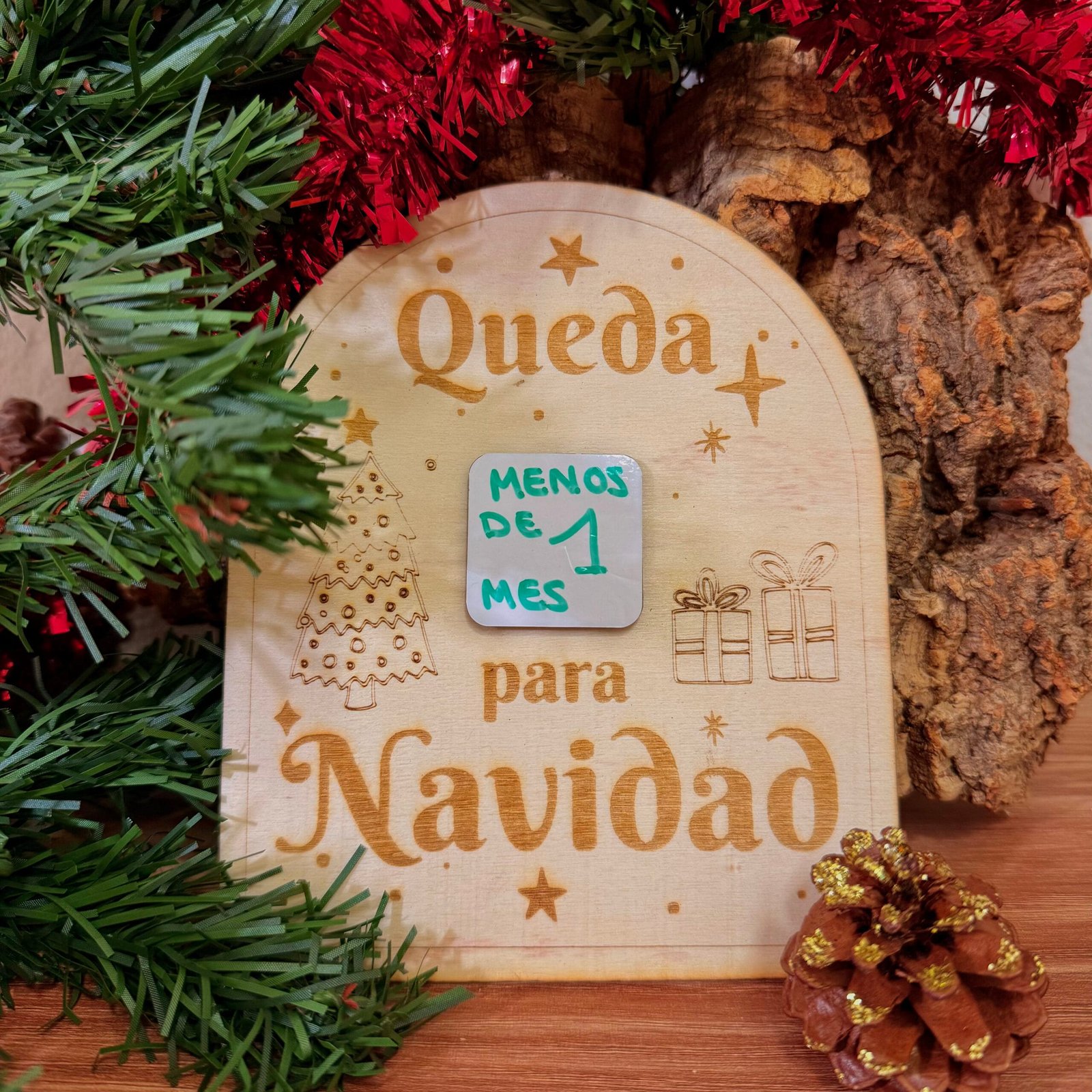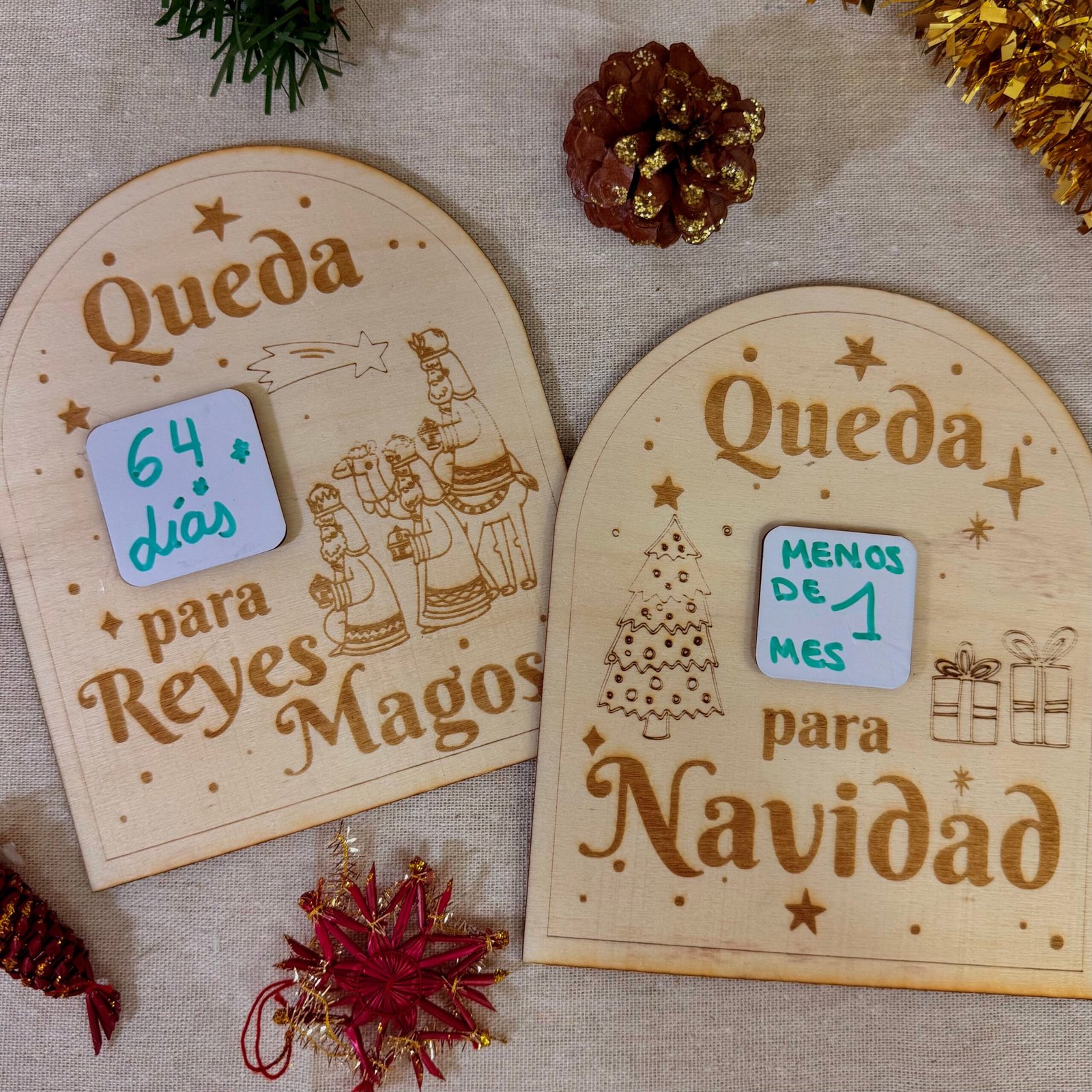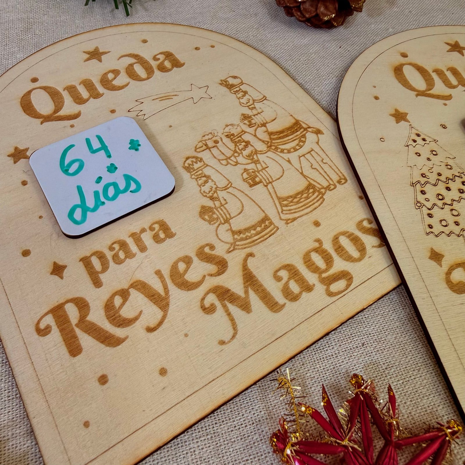 Vive la emoción de las fiestas día a día con nuestro cartel de madera para la cuenta atrás de Navidad o la llegada de los Reyes Magos.