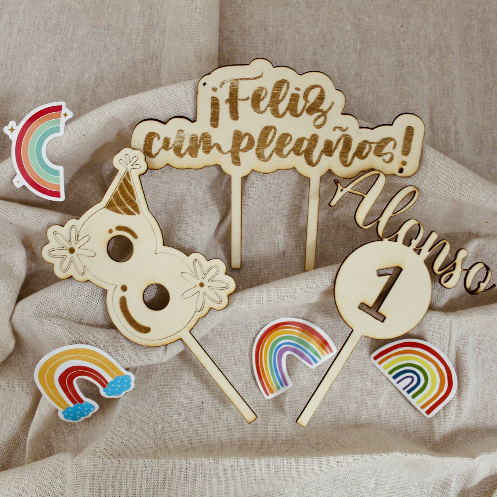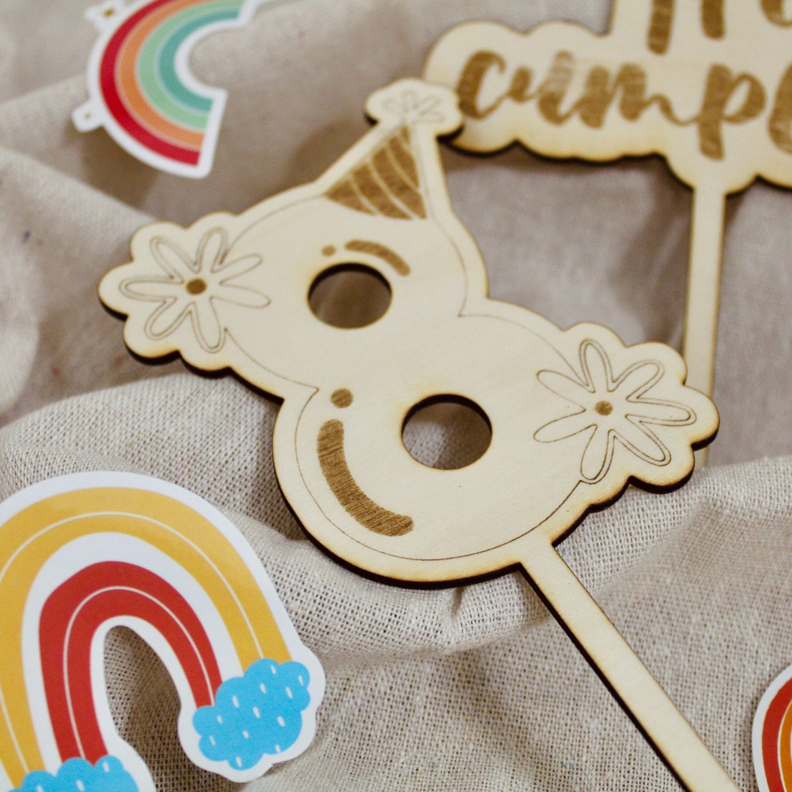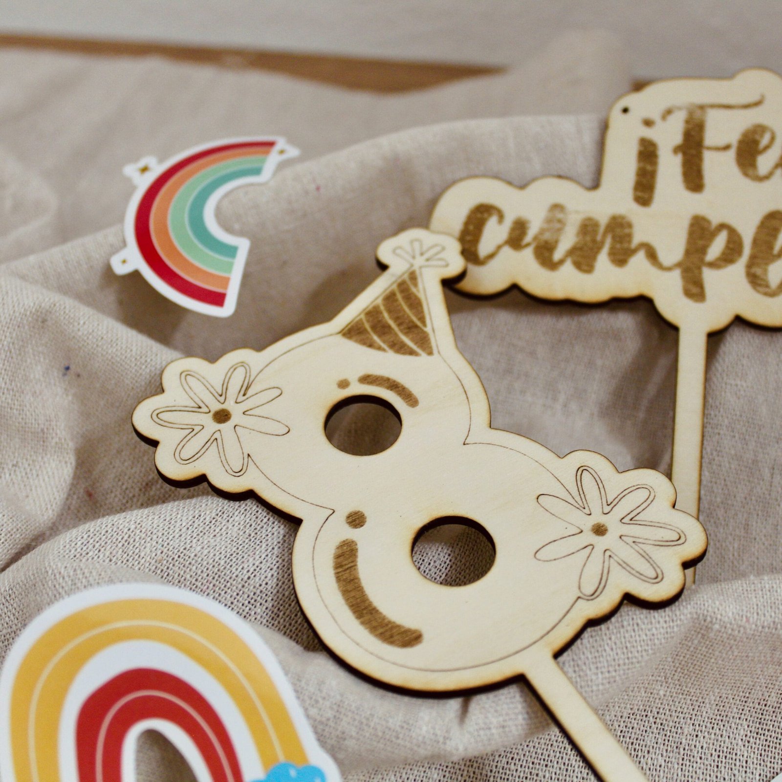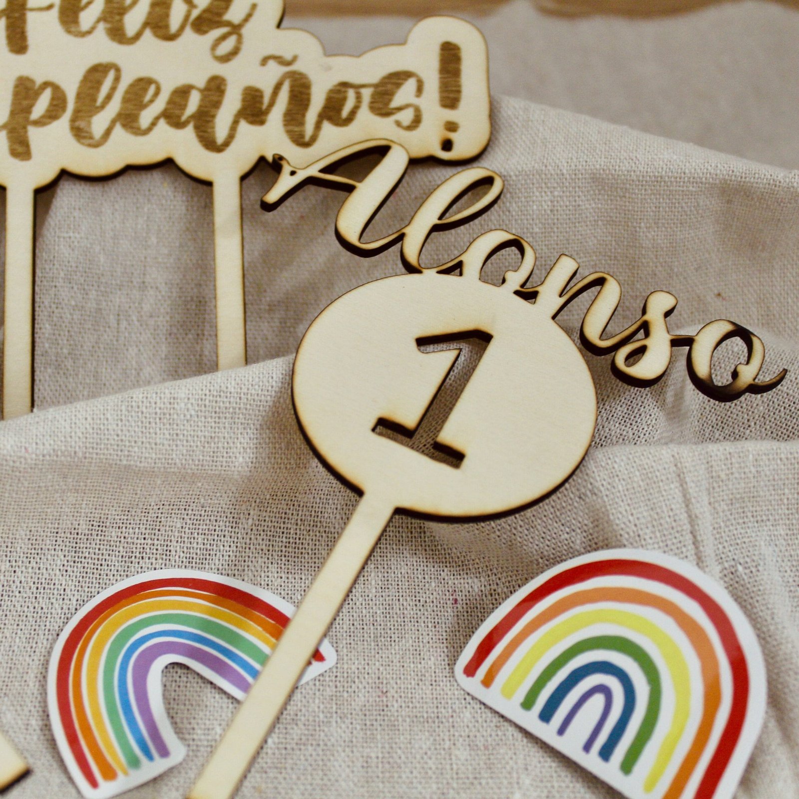 Topper de tarta de madera personalizado – Números, frases o dibujos para celebraciones
